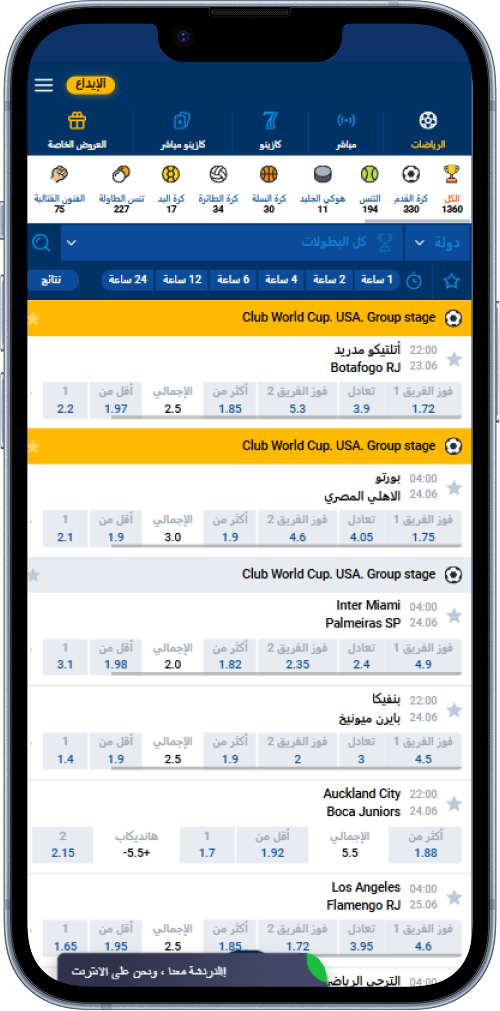 مع تطبيقات Mostbet, يمكنك المراهنة بسهولة على رياضاتك المفضلة، سواء قبل المباريات أو أثناءها. يتم تغطية جميع الرياضات والمسابقات الرئيسية، كما أن الدوريات المحلية موجودة أيضًا. من بين أفضل الرياضات التي يمكنك المراهنة عليها في مصر:
