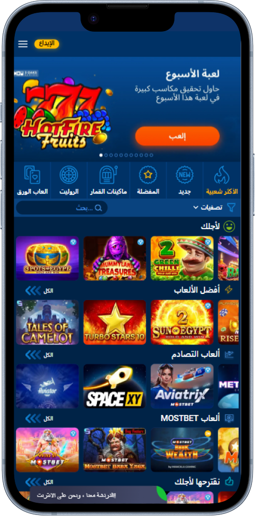 إذا كنت ترغب في لعب ألعاب الكازينو والمراهنة على الألعاب الرياضية في مصر على الهاتف المحمول، قم بتنزيل تطبيق Mostbet لنظام أندرويد أو iOS. اختر إصدار التطبيق حسب نظام التشغيل الخاص بك وقم باللعب وقتما تشاء. يوصلك تطبيق Mostbet بجميع وظائف موقع سطح المكتب، بما في ذلك الواجهة العربية والدفع بالجنيه المصري. احصل على روابط تحميل تطبيق Mostbet اليوم وابدأ اللعب أينما كنت.