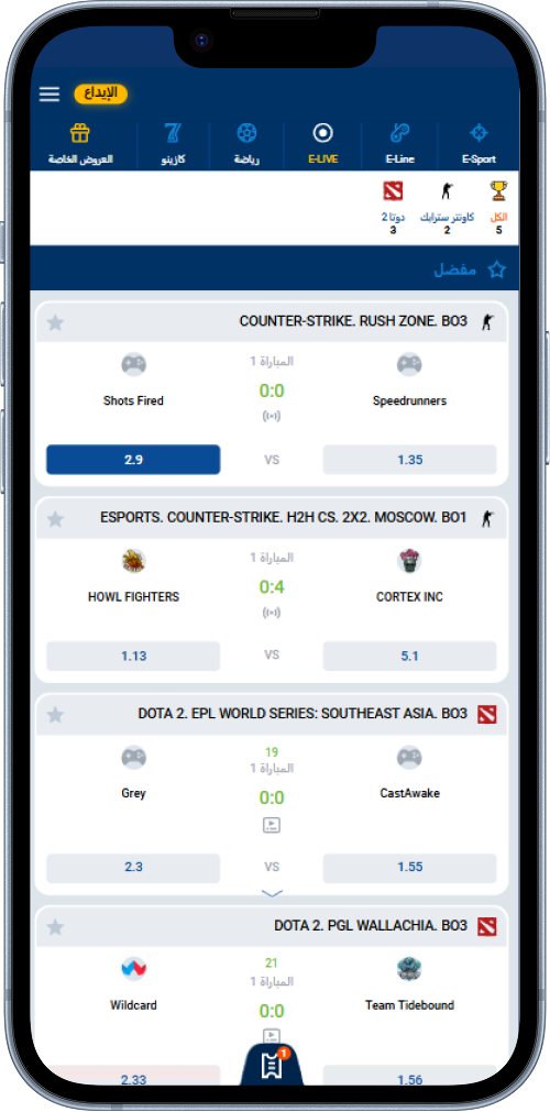 - الرياضات الإلكترونية. ضع رهانات على أفضل البطولات في Dota 2 و CS:GO و League of Legends و FIFA.